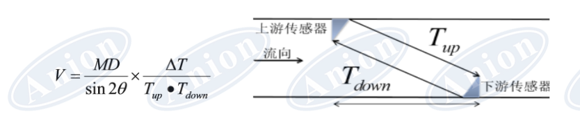 超聲波流量計通過上、下游傳感器相互發送及接收1Mhz超聲波,當超聲波束在液體中傳播時,液體的流動將使傳播時間發生微小變化,并且其傳播時間的變化正比于液體的流速。